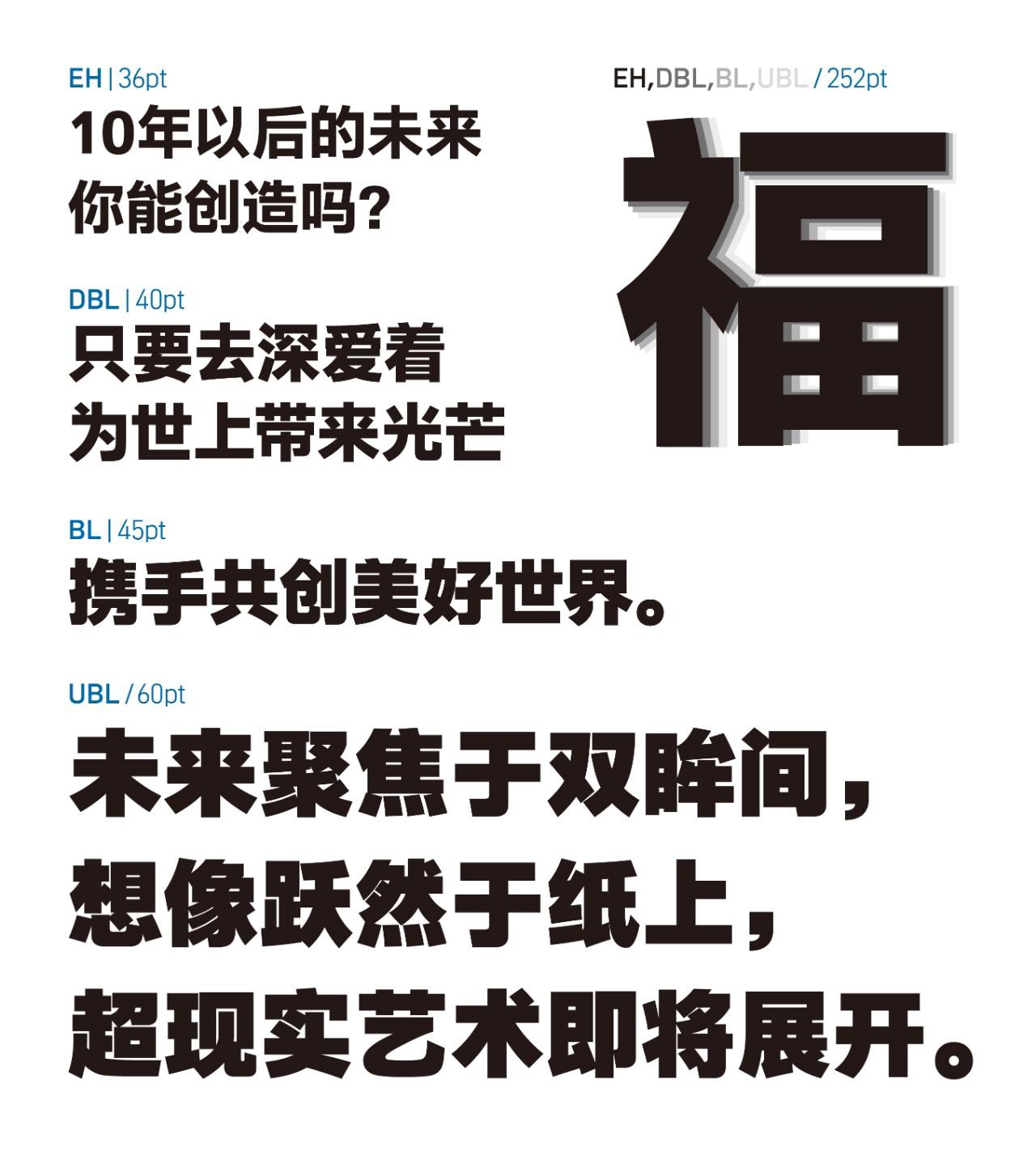 文鼎晶熙黑体系列字体设计简洁流畅,深具现代感的笔划造型。它的大字面、大字腔、笔划高视觉延展性设计,以符合人体工学之眼睛横向阅读。