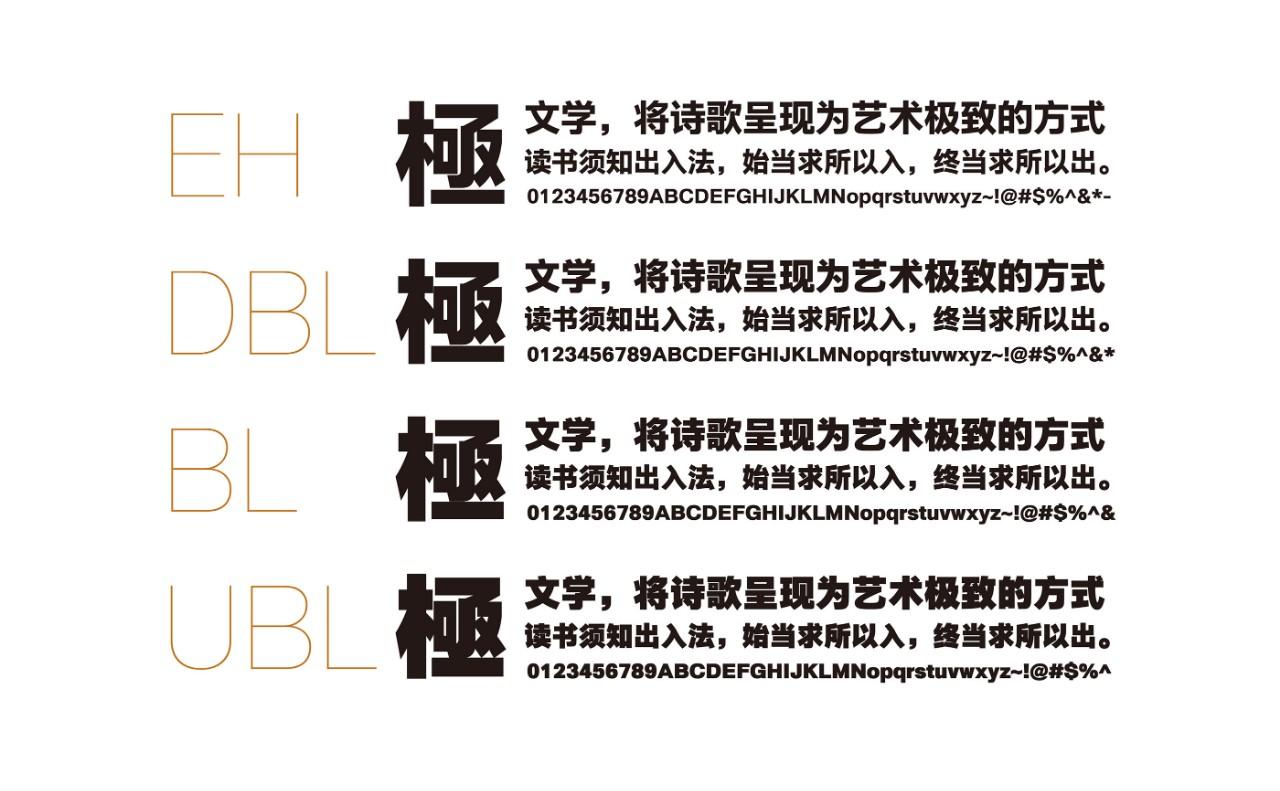 近日,晶熙黑体推出了这一家族字体中的ExtraHeavy、DemiBlack、Black还有极粗黑UltraBlack 。