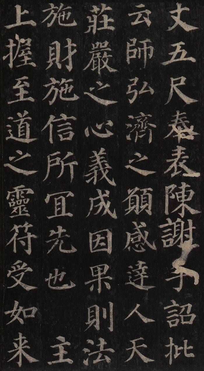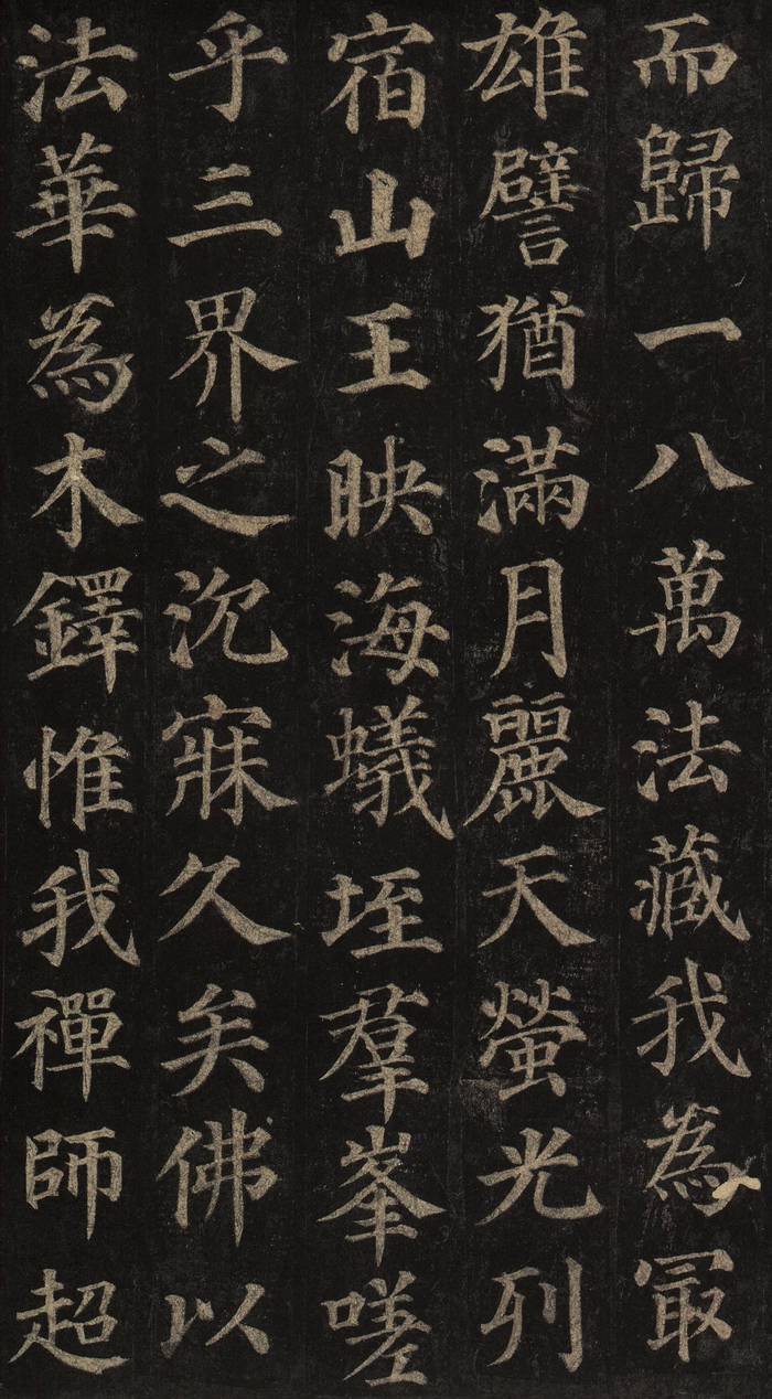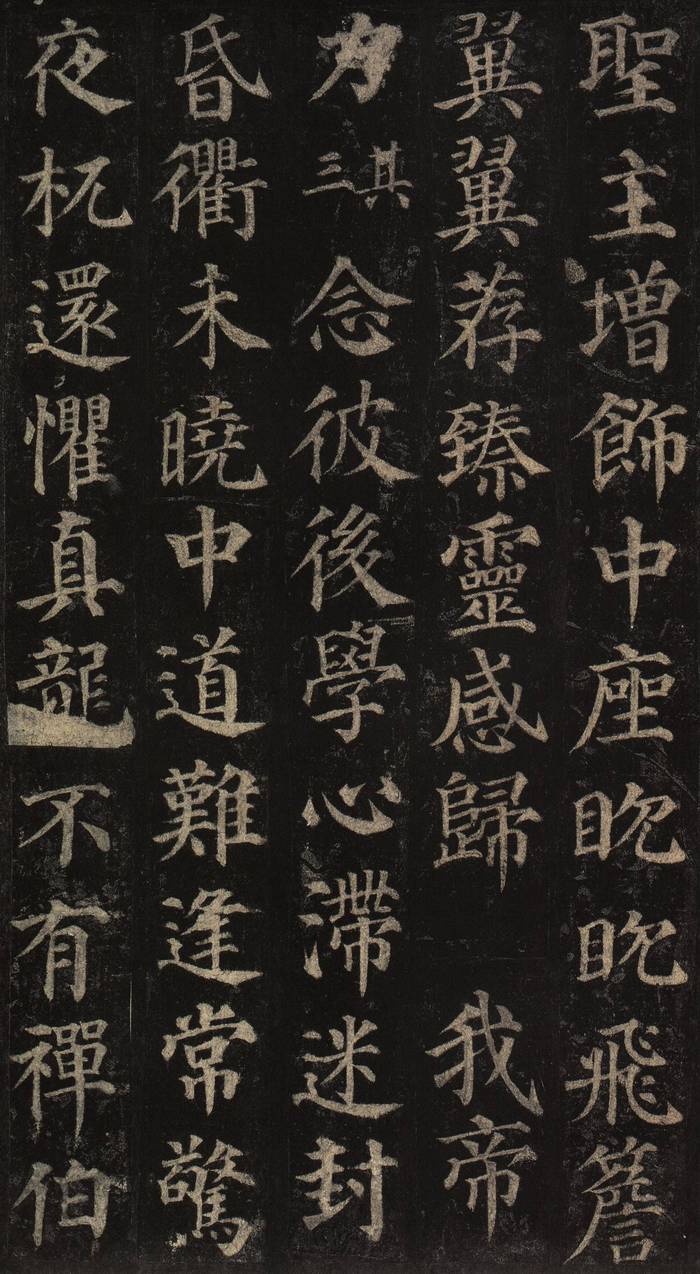 轮奂斯崇,为章净域。真僧草创,圣主增饰。中座耽耽,飞檐翼翼。荐臻灵感,归我帝力。(其三)