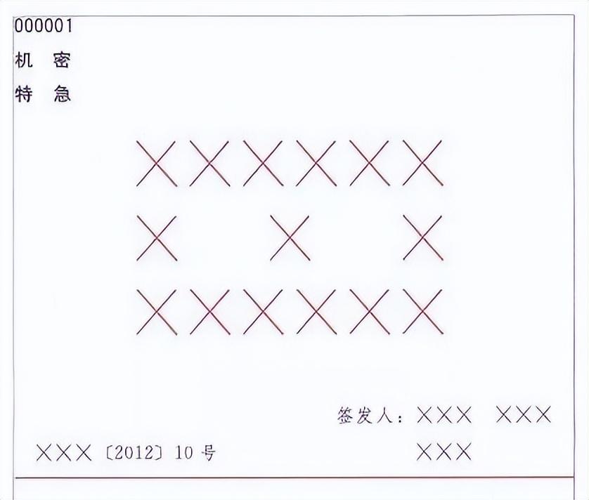 由发文机关代字、年份、序号组成,如“×政发〔1999〕82号”,“×政发”指发文机关代字,“ 〔1999〕 ”指年份,“ 82号”指发文序号。整个意思就是××省人民政府在1999年所发的第82号文件。标识位置在发文机关标识下空2行处,用3号仿宋体字,居中排布;年份、序号用阿拉伯数码标识;年代应用全称,用六角括号“〔〕”括入;序号不编虚位,即不编为001,不加“第”字。(在日常文件中,没有认真学习过的,这一部分出现错误的比较多)