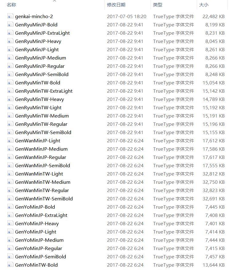 基于思源宋体修改而成的新字体,总共有42款字体,出自日本字体爱好者。
