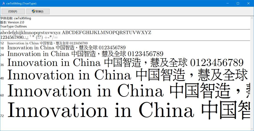 台湾明体cwTeXMing是一款旧字形外观,在一定程度上仿照古籍〈康熙字典〉字体,字形构架 稳固,庄重而大方,适用於古籍文献印刷。