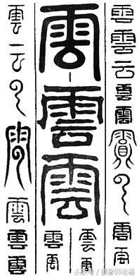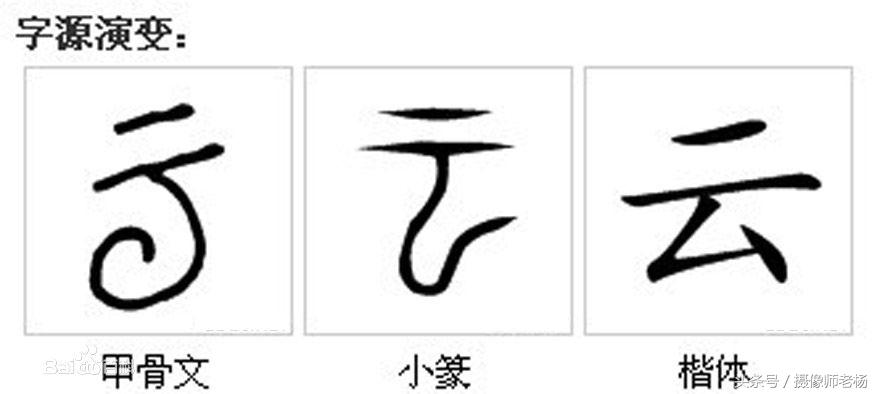 下面这个弯曲的像蜗牛一样的部分表示回旋的气流,加起来就是各云字。等到金文时期,云字下面表示气流的部分,换了各方向。