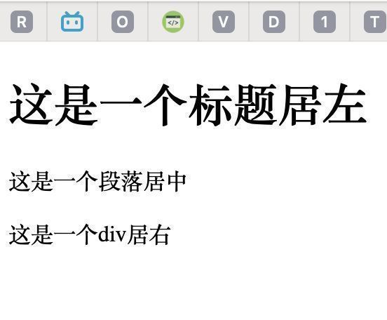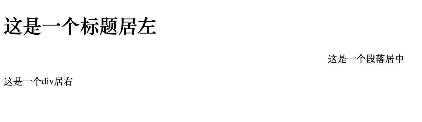 4-小结,通过对浏览器的拉伸和缩小,发现其实内容是随着浏览器的宽度改变,可以理解为,这几个值的作用并不是单纯的居左居右,是对于标签的内容进行的改变,这个改变会随着浏览器的宽度做出自适应。而且,并不会因为赋值给标签还是自定义标签而改变。