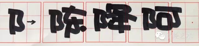 ”右边的捺笔可以书写成短点或者圆点。积上面的撇笔画我们在所有的卡通字体中都可以书写成横笔画,但是我们在最上面的横笔画笔法为靠右下书写(具体可以参考我编著的教材《手绘POP设计自学教材》)。粒字的米旁上面两点写成圆点以卡通趣味性笔形。