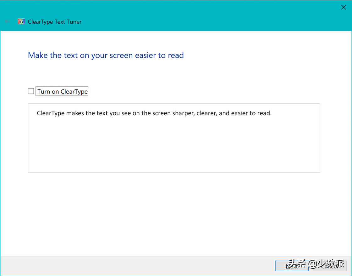 但是即使你在这里取消勾选,你还是需要走一遍设置 ClearType 的流程。这里根本没有「确定」的按钮。¯\_(ツ)_/¯