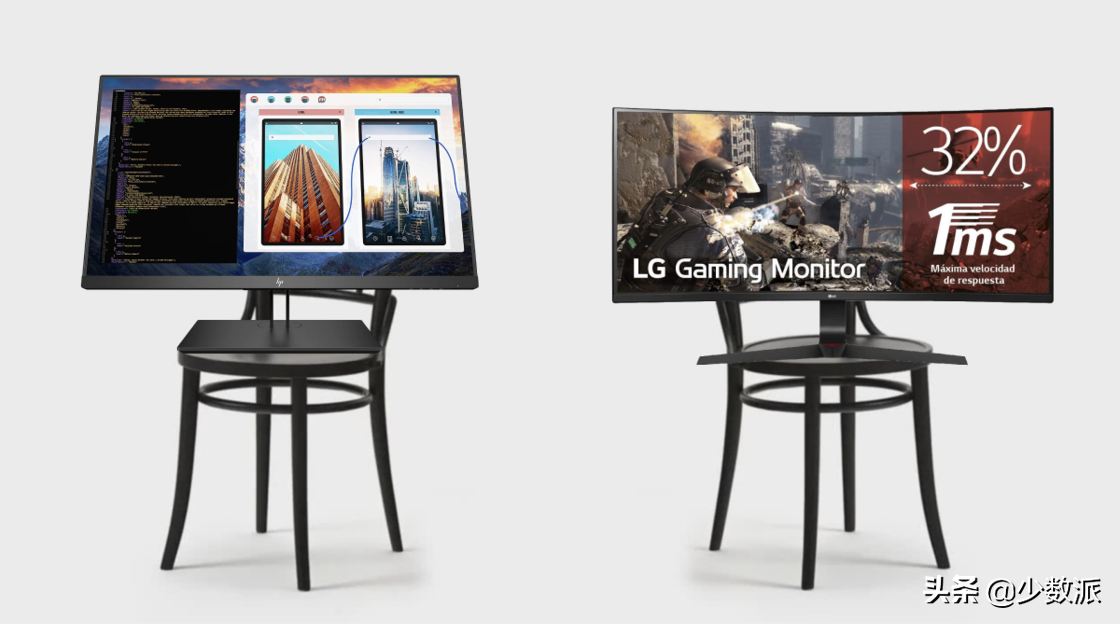 另外这里还有几个对角尺寸 55 英寸的显示器,但是它们在普通桌面上用起来就不太方便了。