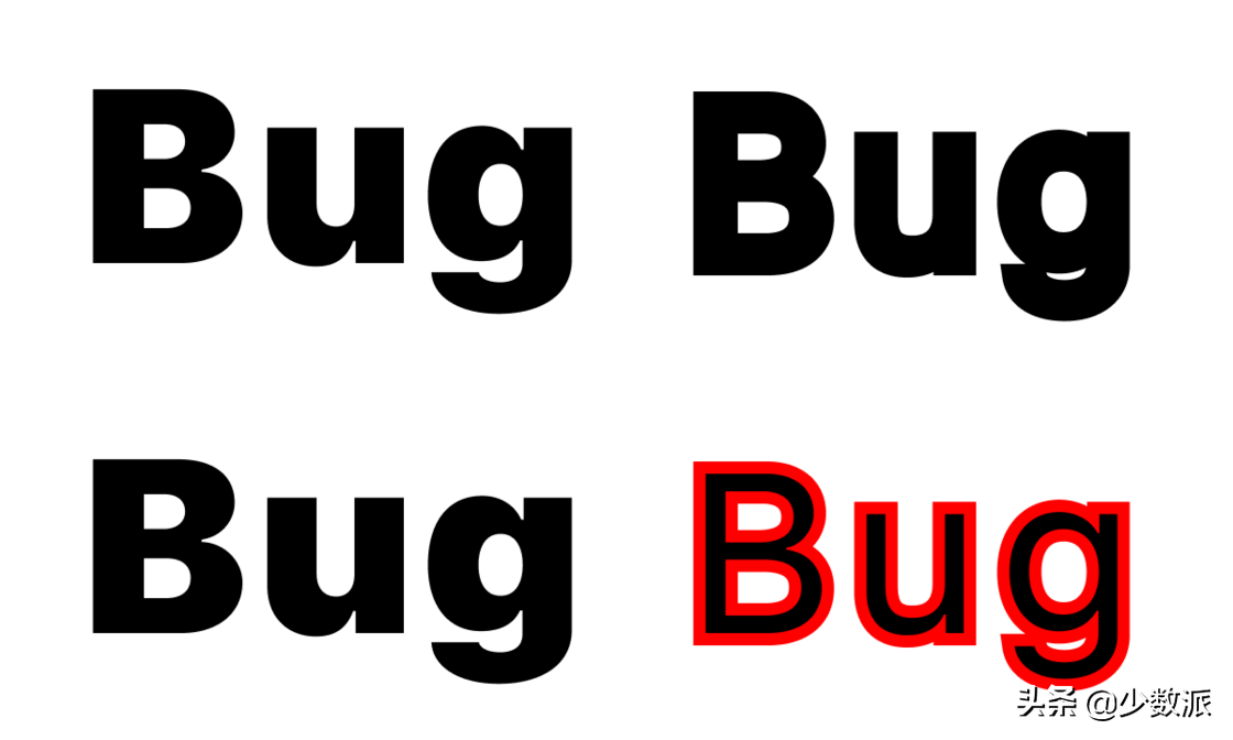 真实粗体 VS 通过增加轮廓模拟的粗体