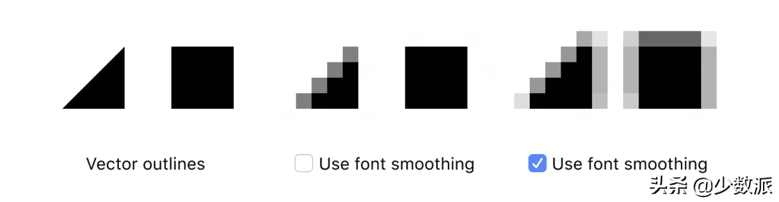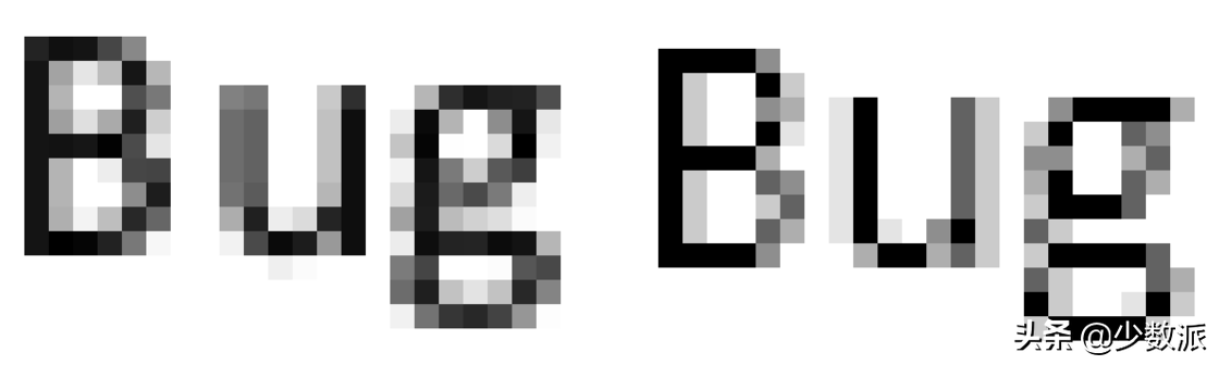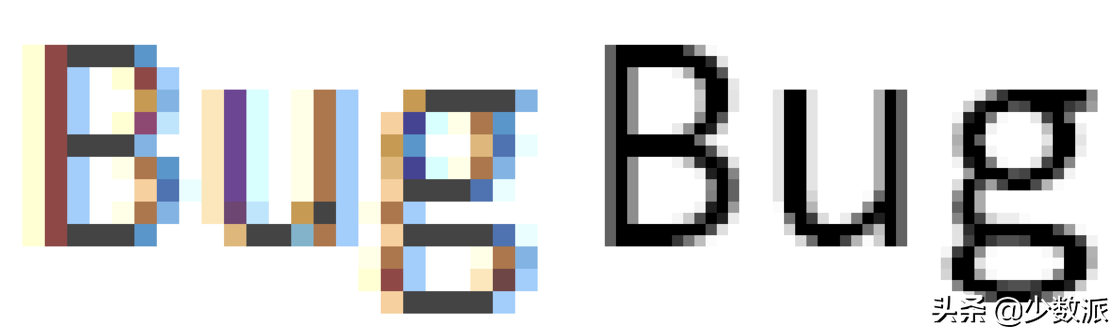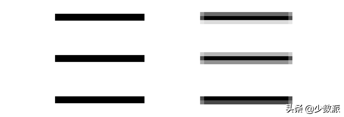 但这正是 macOS 「字体平滑」这一功能所做的事情!这里是另外一个例子,开启「字体平滑」的 macOS 会将原本清晰丝滑的像素边缘渲染成一片模糊: