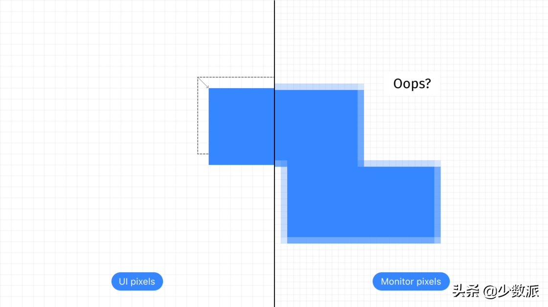 我们来看看。12/7 的缩放比例意味着对于每 7 个逻辑像素点,会有 12 个与之对应的屏幕物理像素点。也就是,对于每 7 个像素,我们只有画一个 7 个像素高的长方形,才能将其跟像素网格对齐。