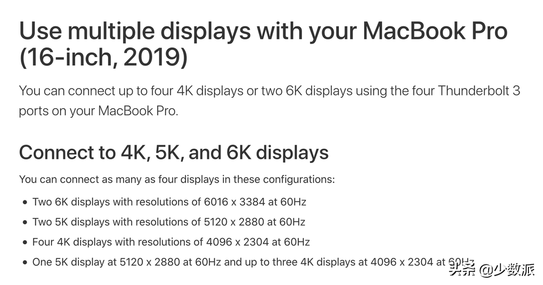 这整个情况让我回想起 2014 年买 4K 显示器的情形:仅有一款型号支持,端口令人迷惑,Apple 对其支持真的糟糕。希望五年之后,120Hz 的显示器会成为标准。直到那时候,我们都应该感激 Apple 让我们虽然极为不方便,但是至少能给 macOS 用上现代显示器。谢谢 Apple!
