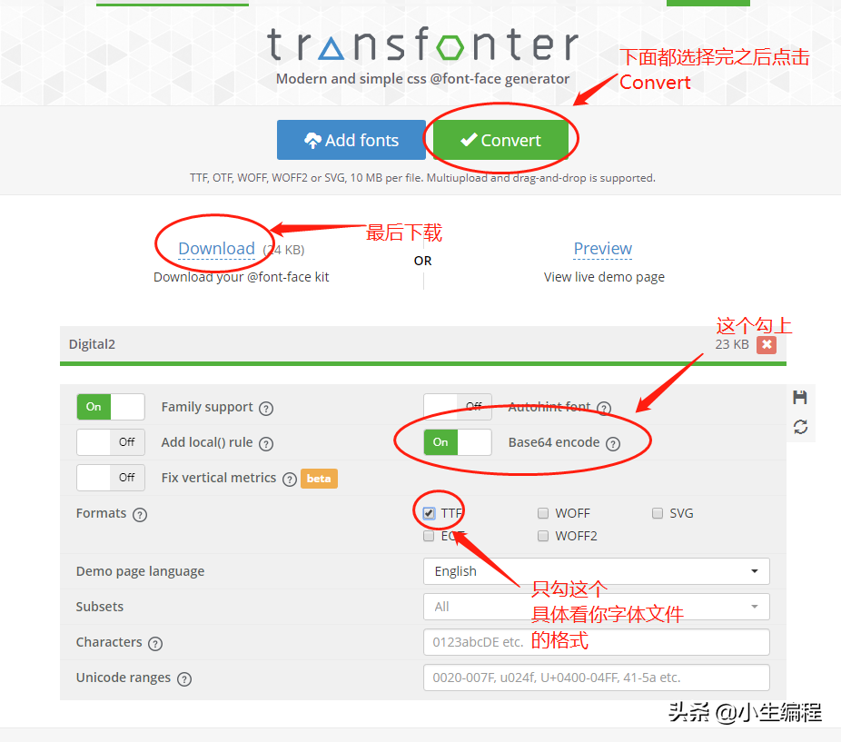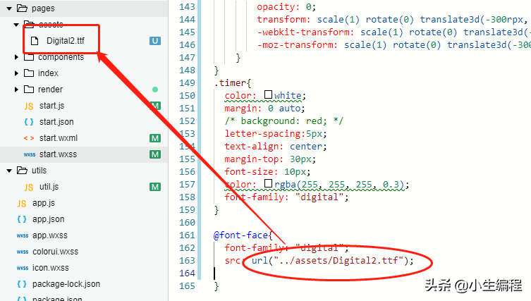 首先小程序字体文件是无法放在本地的!!!当你尝试在css中导入本地字体文件时。。。