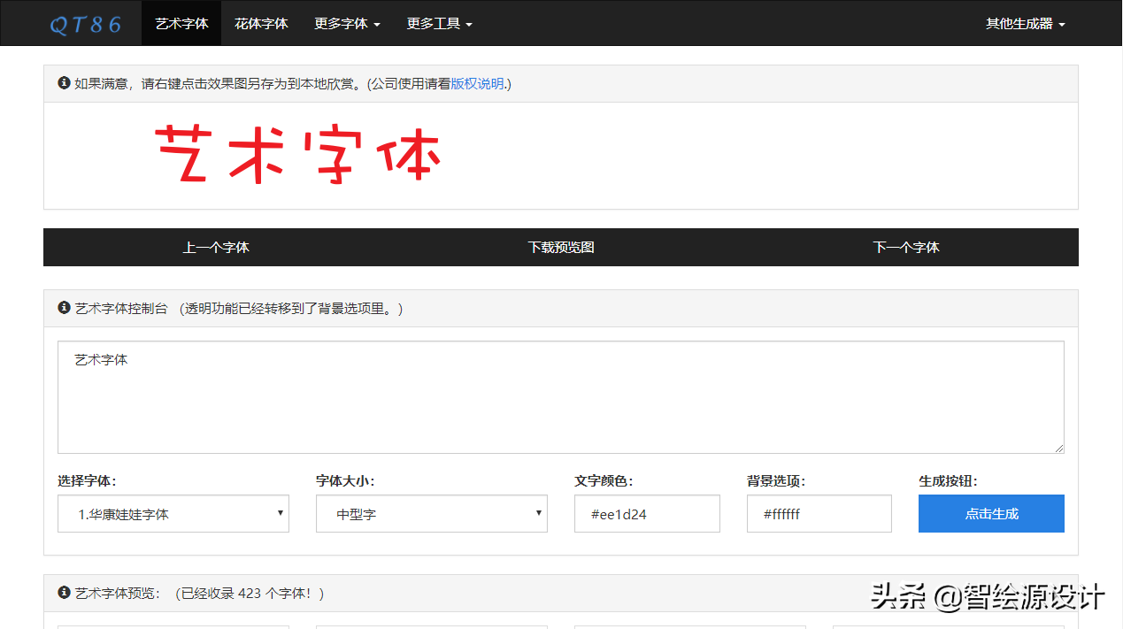是一个自动生成字体的网站,直接选字体,以及字体大小,还有背景