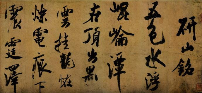 释文:研山铭五色水浮昆仑潭在顶出黑云挂龙怪烁电痕下震霆泽厚坤极变化阖道门宝晋山前轩书