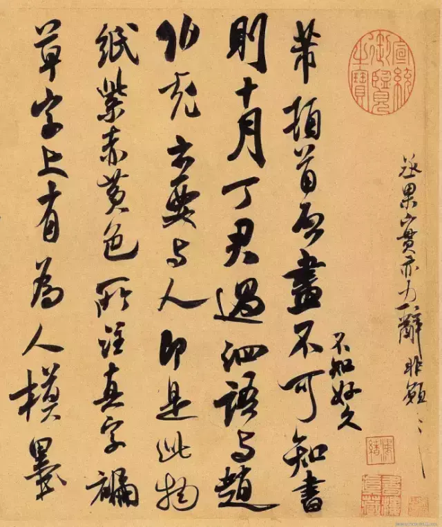 释文:草书若不入晋人格辙 徒成下品 张颠俗子 变乱古法 惊诸凡夫 自有识者 怀素少加平淡 稍到天成 而时代压之 不能高古 高闲而下 但可悬之酒肆 光尤可憎恶也