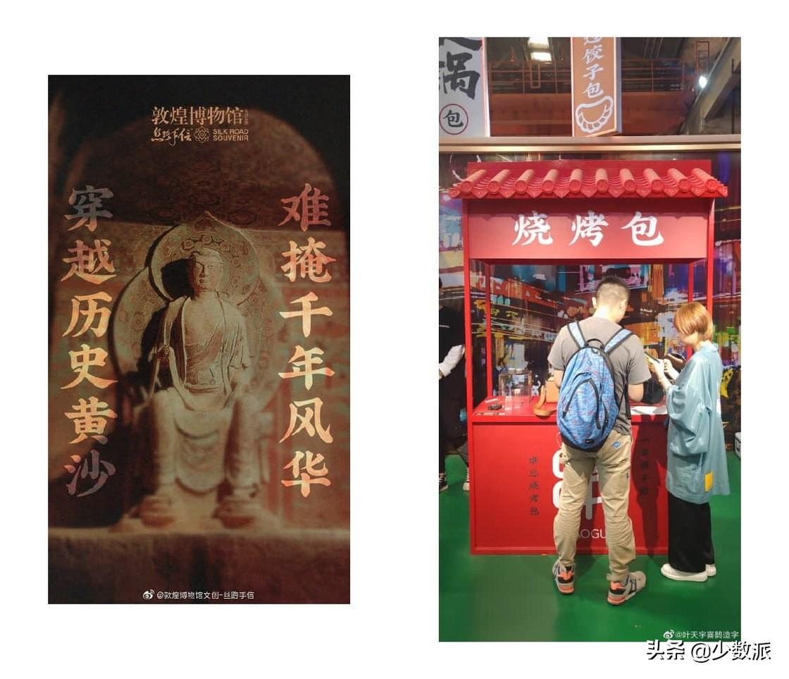 敦煌博物馆广告使用喜鹊招牌体;淘宝造物节上的食品铺使用喜鹊招牌体