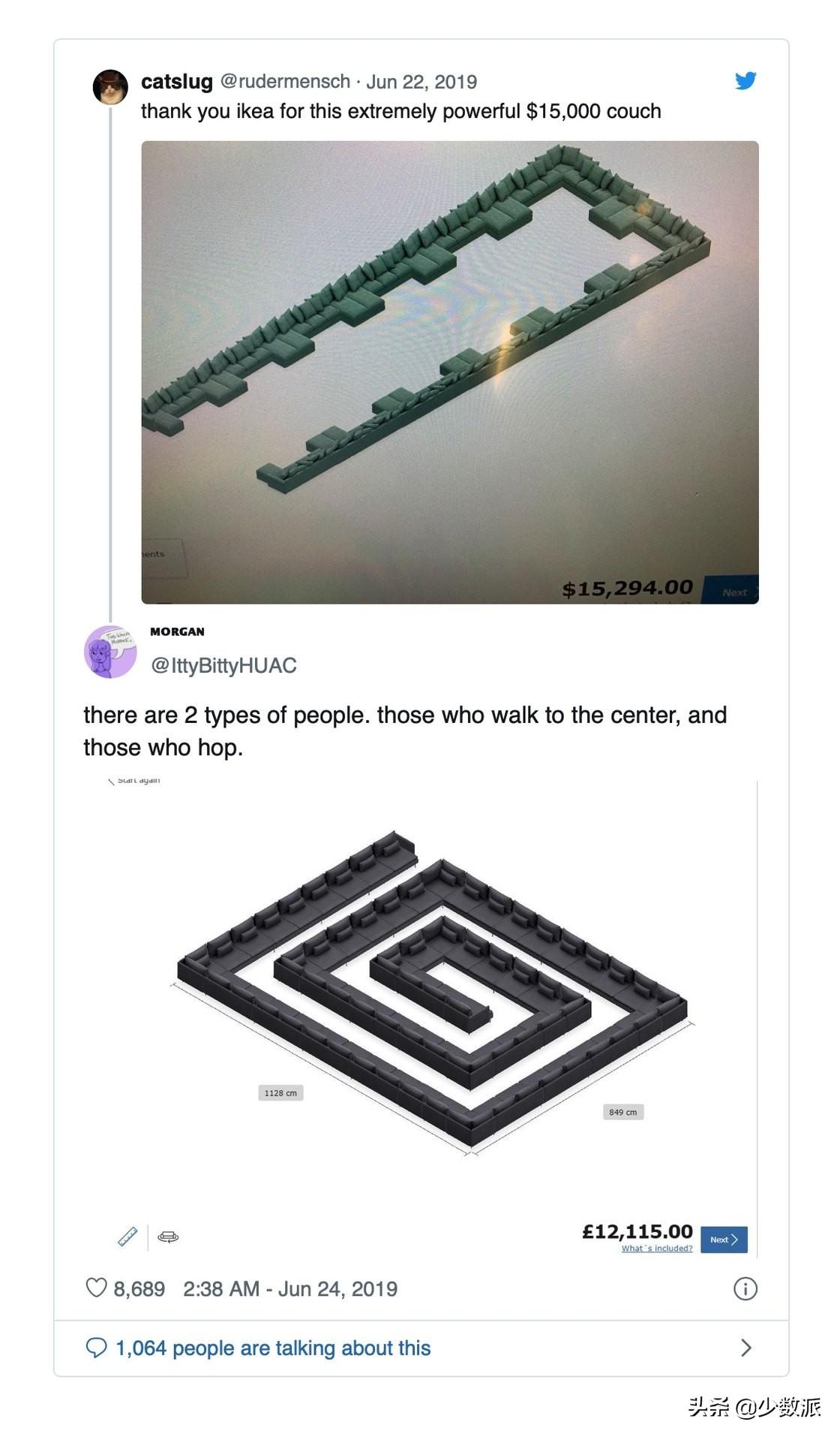 受此启发,干脆制作了这么一款免费可商用的字体,支持三种沙发颜色,平视版和透视版两个角度。要在现实生活中重现字体大概需要购买 1431 个宜家产品,约 13 万美元。