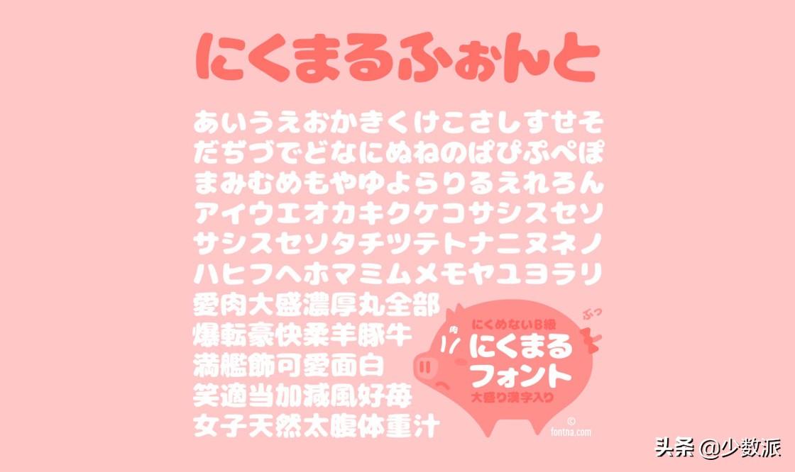 版权: 免费可商用字形覆盖:15,444(简体不是很全)肥美,饱满,多汁,无皱,这是一款猪肉一般的字体。胖胖猪肉体的每个字都像一个气球一样,从中间膨胀开来,有一种圆滚滚的可爱。字体设计之初应该是收到了猪的启发,但它不仅适用于食品,同样适用于儿童相关的场景,因为儿童给我们的感觉就是肉肉的胖胖的,看看他们的手就知道了。值得注意的是,这是一款日文字体,所以对简体中文的覆盖情况不是很好,建议使用繁体输入。