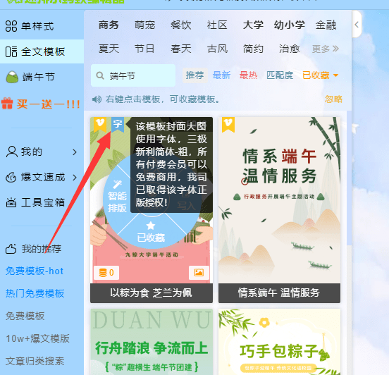 速排小蚂蚁对字体商用是有要求的,对于免费可商用字体是所有用户都可以商用,该字体为第三方字体;对于企业会员专享字体:速排小蚂蚁编辑器官方已取得合法版权使用权,可授权V-plus企业会员(即原V3钻石会员)免费商用对应三极字体,其他V0,V1,V2在任何场景功能下都不可商用;包括样式中字体,如果原样式中已使用或含有商用三极字体,除V0用户不可商用外,V1,V2,V-plus企业会员都可以免费商用,如下图,全文模板左上角有显示“字”的标记