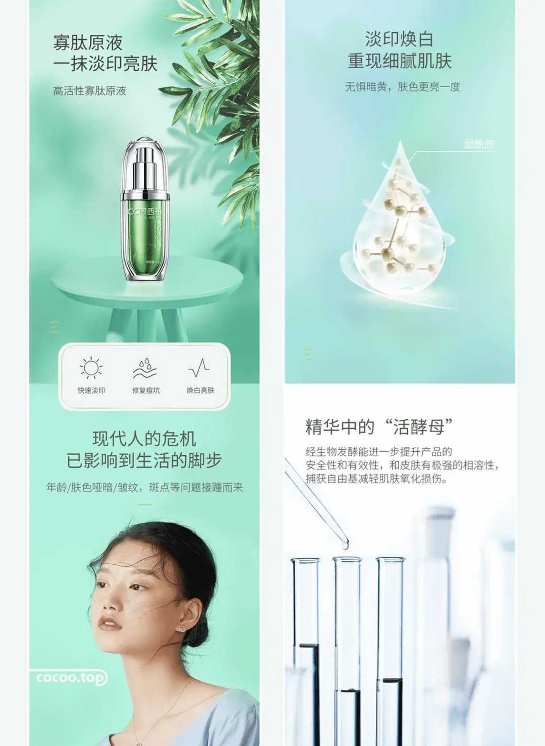 女性产品宣传海报无论是配色还是核心图,通常都带有明显的女性痕迹。所以为了使效果统一,可以选择秀气、修长。文字颜色建议与背景颜色或核心图的颜色一致,这样既能保持页面色调一致,又能清晰表达营销意图。