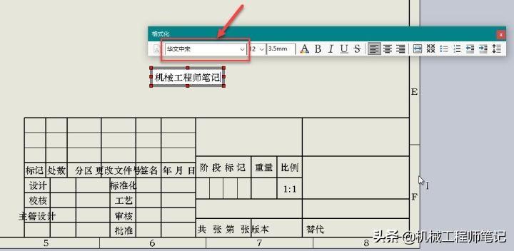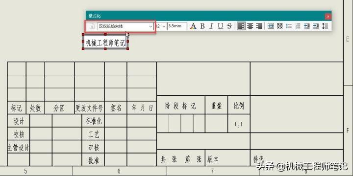 12.在新打开的工程图中,我们可以看到默认字体已经改变了。