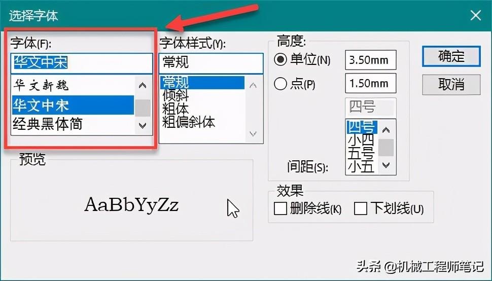 9.可以看到现在的字体是长仿宋,可以选择华文中宋试试,然后单击确定: