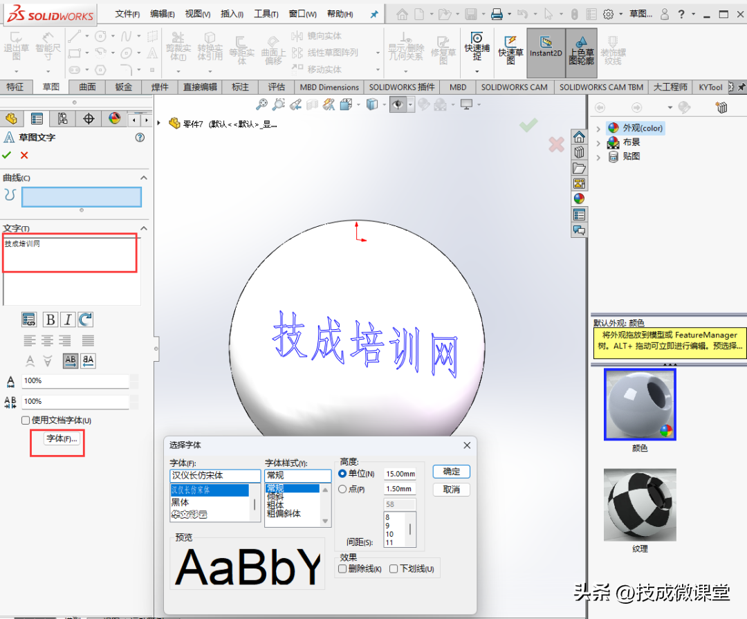 要修改solidworks零件表面字体,可以按照以下步骤进行操作:1.打开solidworks软件并加载需要修改字体的零件文件。2.在左侧的特征管理器中,展开“特征”文件...