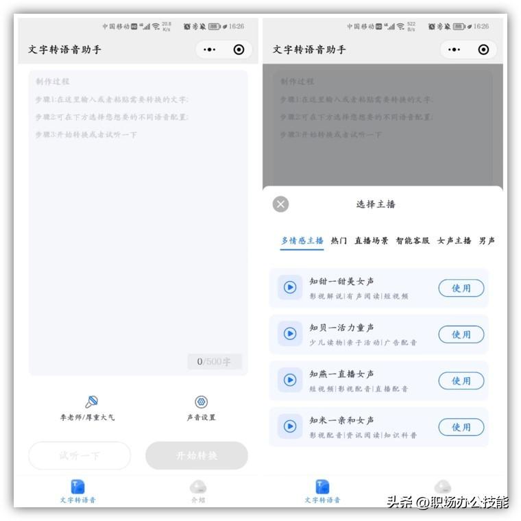 很是解说类视频里的配音,听上去非常清脆响亮,其实这都是用工具生成的。这款小程序可以将文字转换成语音,提供了百余种不同音色的主播,直接一键使用主播声音。