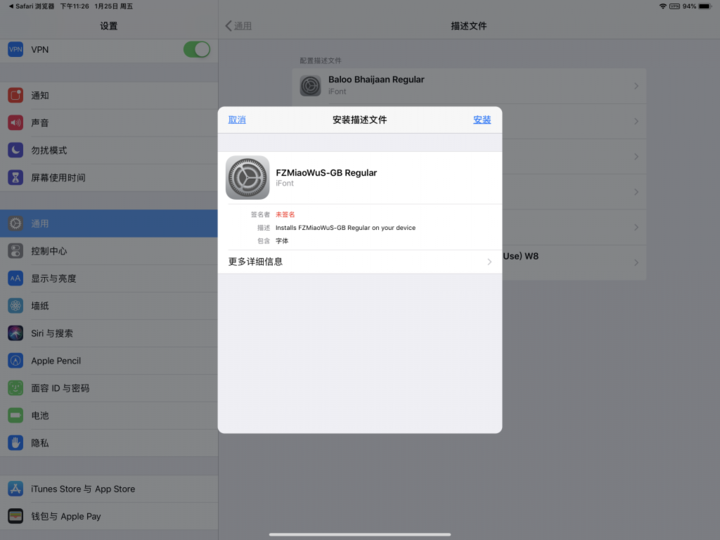 之后会提示你需要安装描述文件,按照步骤安装完即可。