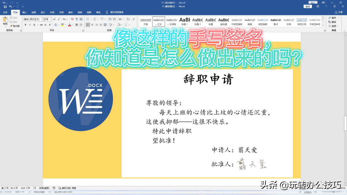在日常工作中经常会使用Word文档,有时在文档中编辑XX申请书,需要插入手写的签名,可领导出差了,等不急领导回来手签,怎么办?
