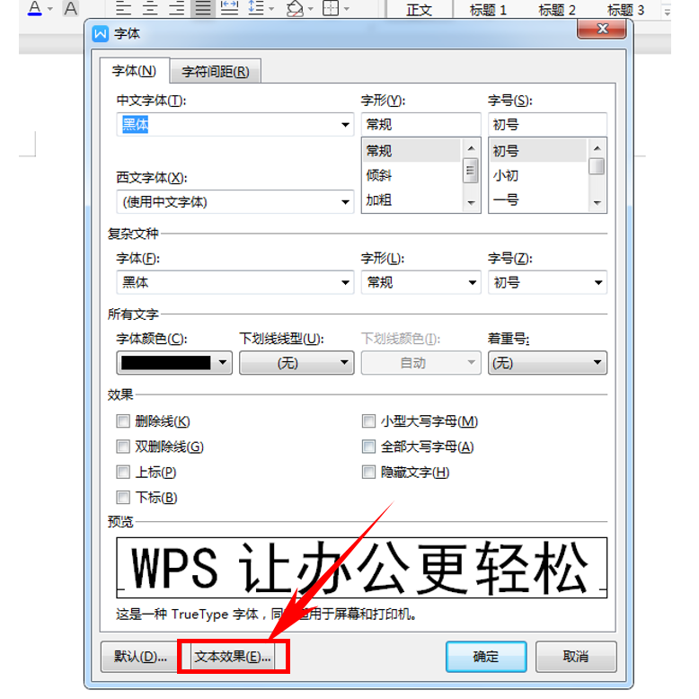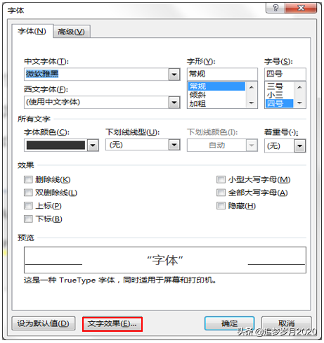 第三步:打开"字体"对话框——单击"文字效果"按钮,如图4。