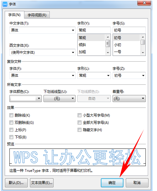 此时我们在字体对话框下端可以看见预览效果,并点击确定: