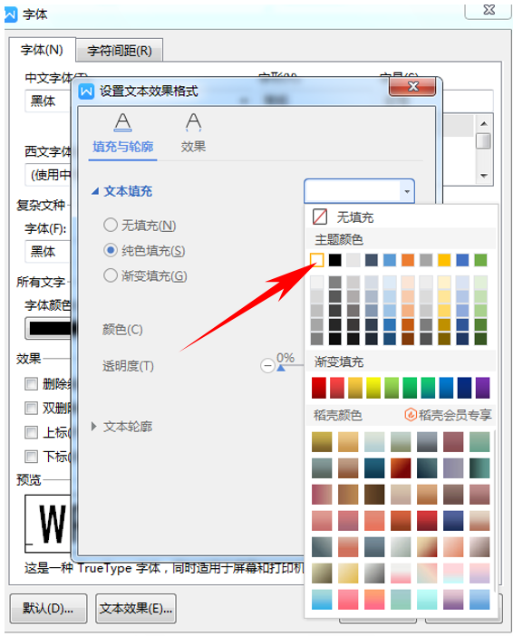 在设置文本效果格式对话框中选择文本填充–选择白色: