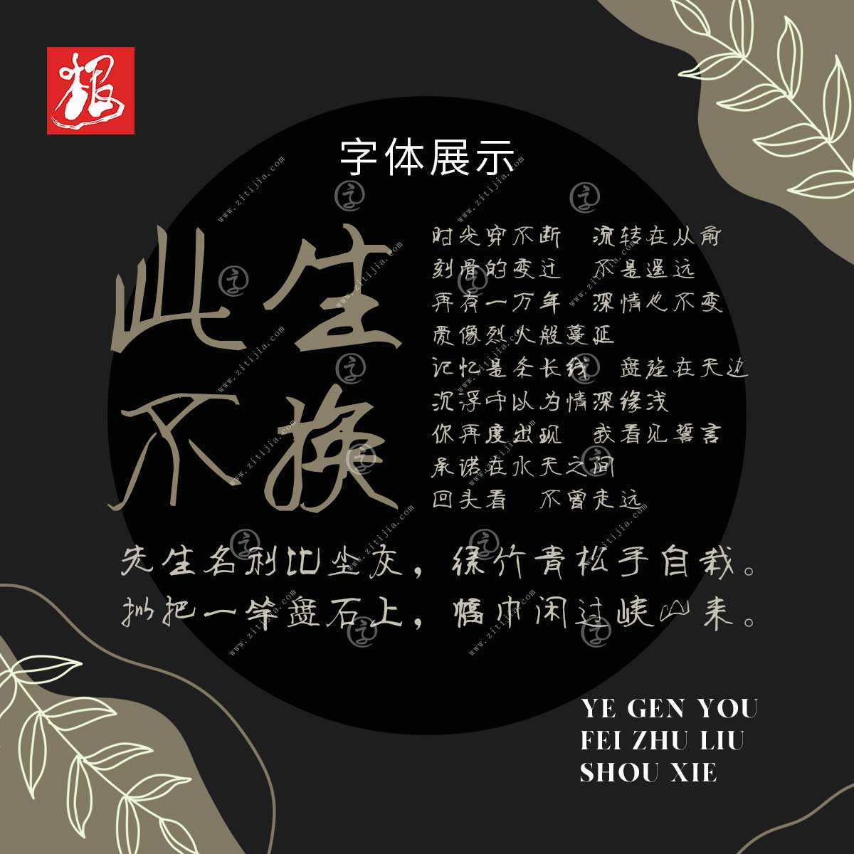 所以呢我们就可以用这款叶根友非主流手写体,来作为艺术字体,来展示自己的名字,既显得自己与众不同,又能够给别人赏心悦目的感觉。心动不如行动哦,赶紧到字体家下载吧。购买正版字体,就上字体家!