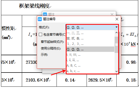 点击确定后,我们还可以点击编号进入题注编号对话框,点击格式,在里面选择适合的格式。如图5