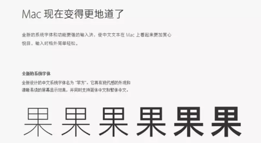 苹方字体从设计上摒除了华文黑喇叭口的衬角,彻底变成了无衬线字体。