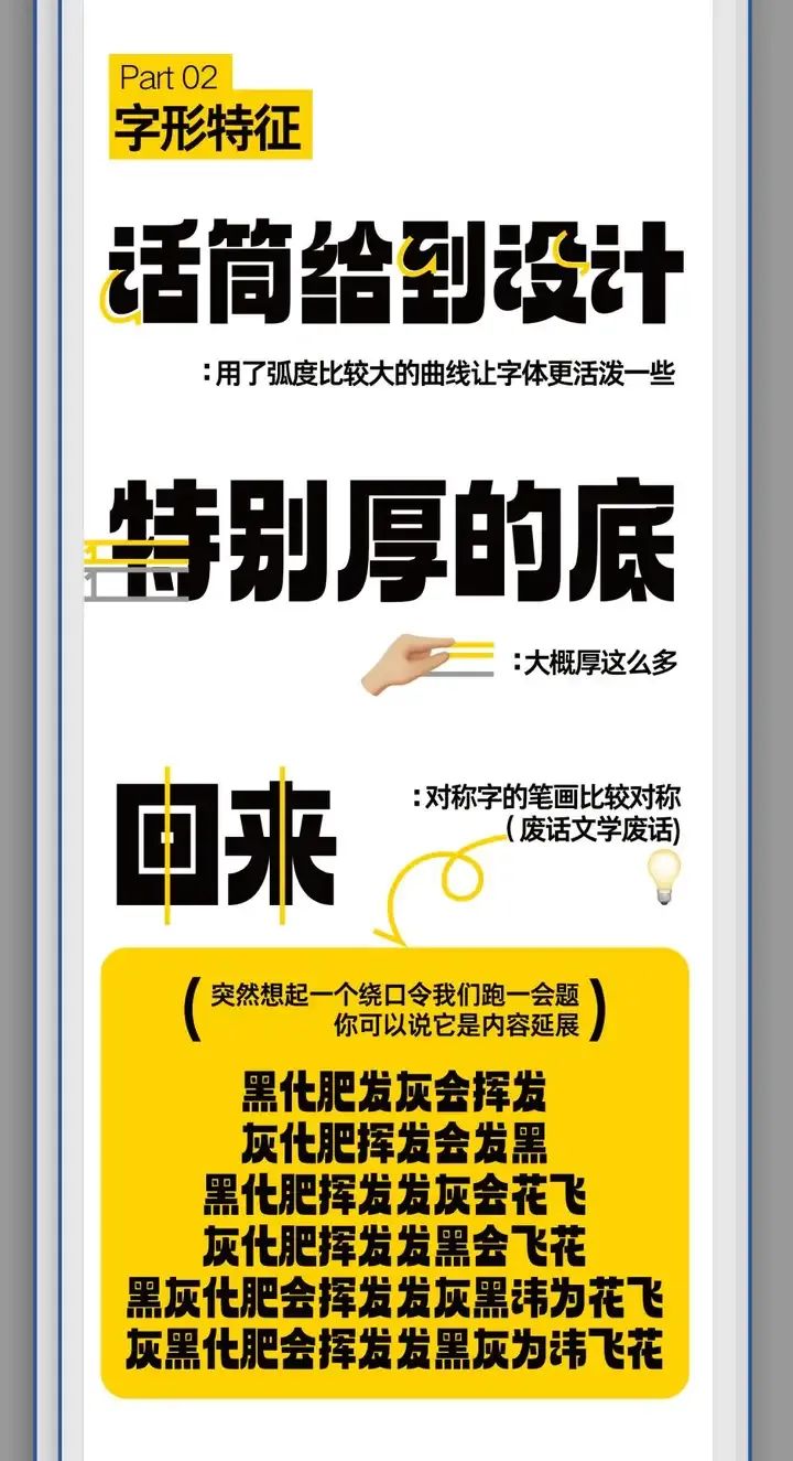 厚底黑这款字体是一款兼具厚重感与活泼感的标题字体,字形上用了弧度比较大的曲线让字体更加灵巧一些,也让它的每个笔画增厚许多,在西文的设计上,同样沿用了中文的特征,底也较厚,弧线也较为灵活,具有很好的视觉感,适合应用于艺术设计、平面宣传设计、网页设计等领域。