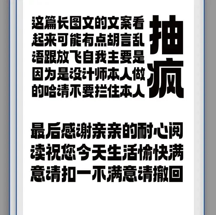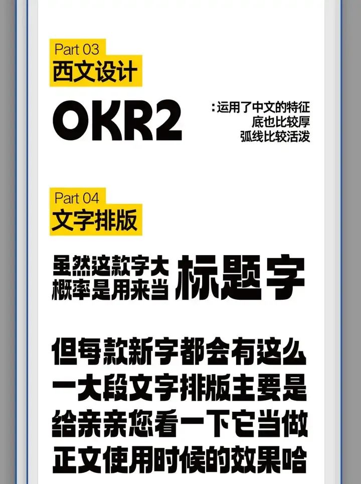 Aa厚底黑是Aa字库推出的一款较为厚实的标题字体,该字体整体风格如它名字所示,整体字形粗壮厚重,但同时字体又很窄长更具有现代活泼感。