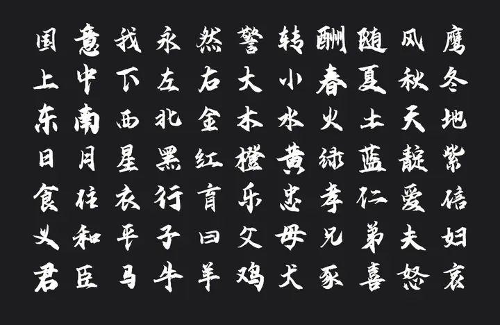 字体保留了毛笔书写留下的手写痕迹,在起笔、收笔、转折处会有明显的毛笔的痕迹,这使得字体更加接近手写的自然,有一种质朴感。
