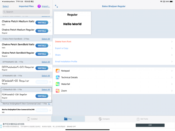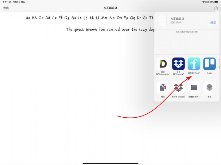 在 iPad 上点击字体文件,拷贝至“iFont”;