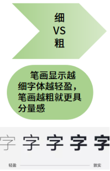 (3)细VS粗:笔画越细字体越轻盈,笔画越粗就更具分量感。
