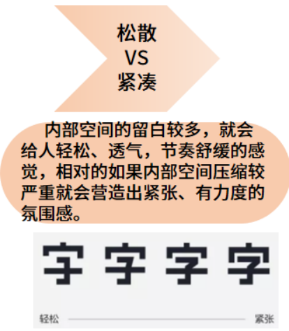 (2)松散VS紧凑:内部空间的留白较多,就会给人轻松、透气,节奏舒缓的感觉,相对的如果内部空间压缩较严重就会营造出紧张、有力度的氛围感。