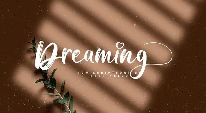 Dreaming 是由 Besttypeco 创建的免费纹理手写字。气质优雅亲切,非常适合文具、banner、营销、广告、编辑设计等项目!Dreaming 字体作为手写体,有着优雅而连贯的行笔,保持了横窄竖宽的特点,气质比较亲切且具有现代感。