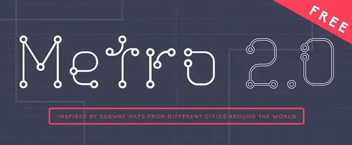 Metro 2.0 是 Filipa Amado 创建的一款全新字体,灵感来自于地铁地图,非常适合未来派、游戏和科技相关项目。这款字体从地铁地图中汲取灵感,将笔画以线条的形式构成,并在转折和连接处设计了小圆形,就像地铁的每一个站点的样式,十分有趣。