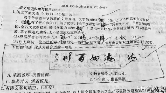今日看网络报道,有一件事刷爆了朋友圈,事情是这样的,谋省的一个线上教学平台在初一语文网课中,展示了一幅书法作品,被一位书法家看到,并发朋友圈吐槽,认为平台展示的这幅书法作品“如此拙劣,势必造成学生审美的庸俗低下”,并指出很多书法老师的书法水平也很低。