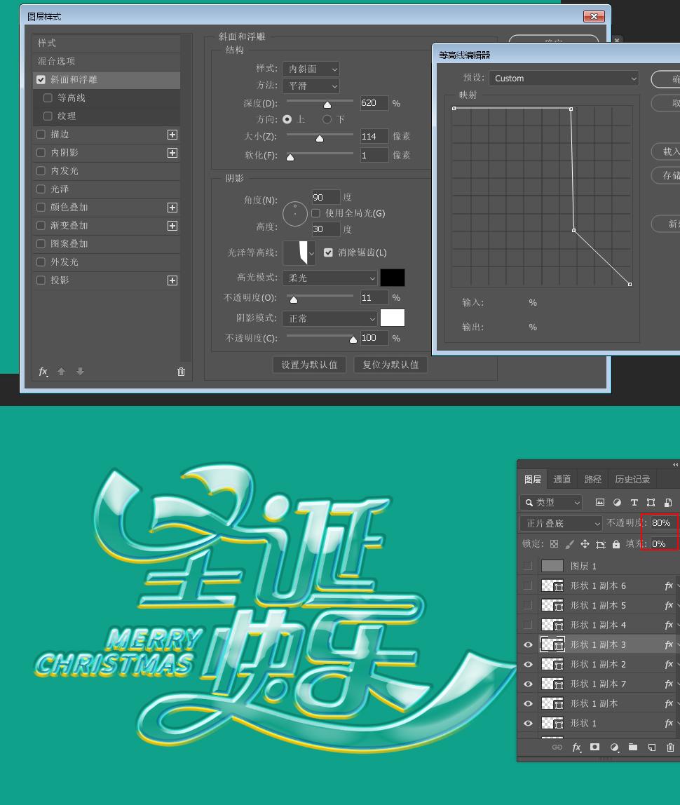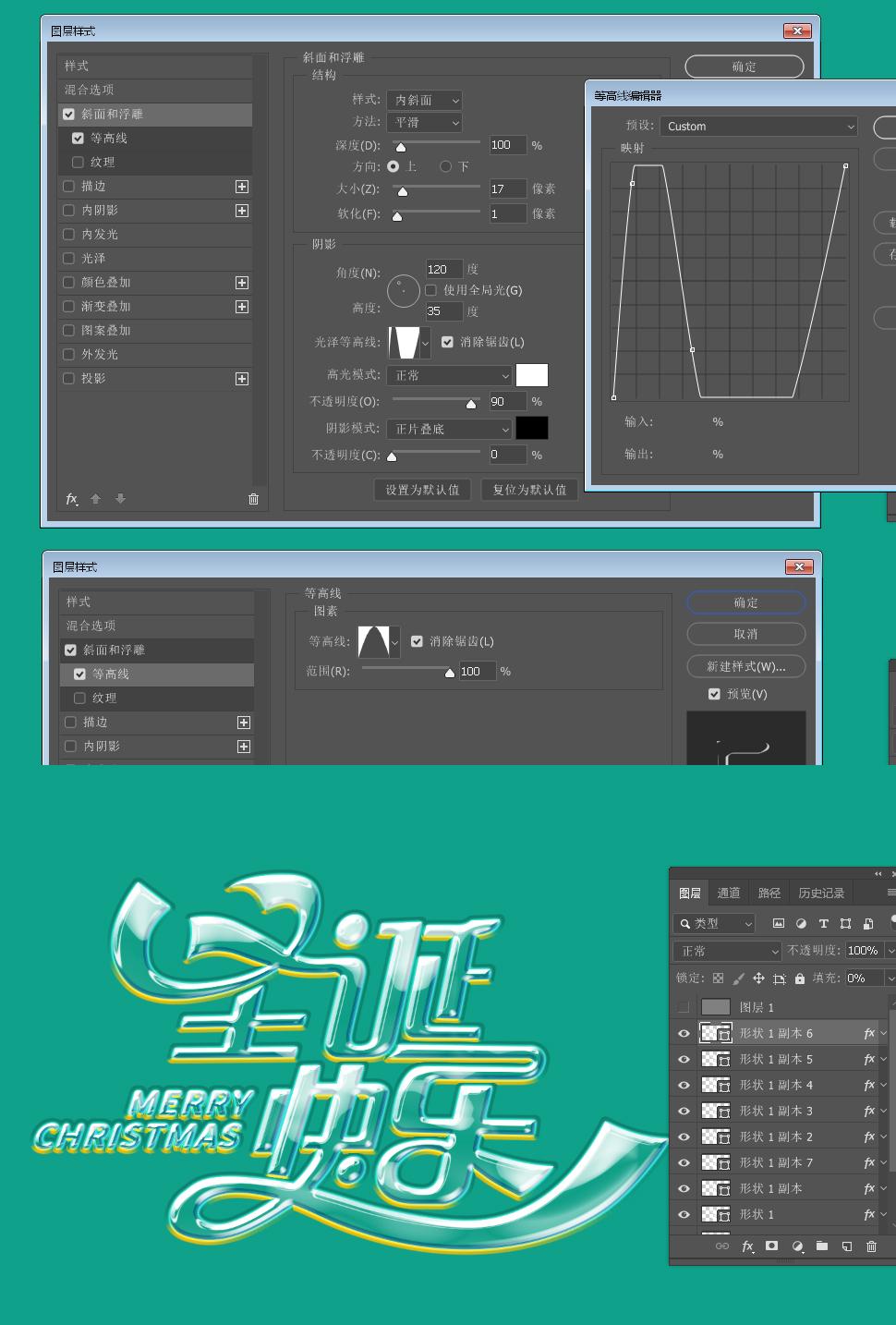 本文介绍用Photoshop制作一款比较漂亮的圣诞字效果。比较容易,只需用多个图层样式,分别加上浮雕和高光效果,做出类似玻璃的质感。快来尝试一下吧。