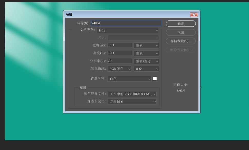 打开PS软件,按Ctrl + N 新建文件,尺寸为1920×1080像素,分辨率为72像素/英寸,然后确定。