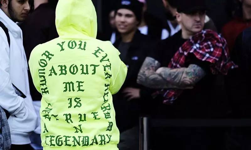 在”过档“adidas 后,阿侃下的每一步棋都能引起轰动,今年2月发布的,Yeezy Season 3 现场上,一件「I FEEL LIKE PABLO」的运动衫,就再次印证他呼风唤雨的实力,甚至在twitter 上发推文表示“没有品牌能在2天完成一百万的惊人成绩”。而现在烂大街的 GOTHIC(哥特)字体在当晚也就算是给大家的一个提前热身 。
