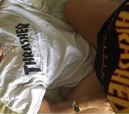 据数据统计,我娜在上一年被媒体捕抓到的画面大概有80%都是上身 THRASHER,从卫衣到短 T 每一件都不放过,简直就一活生生的 THRASHER 移动广告牌。