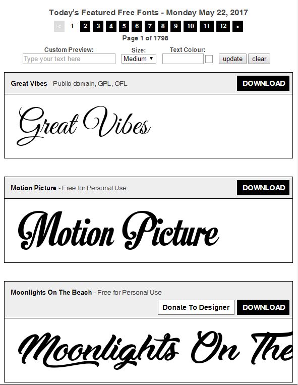 Font Space有很全的字体,都是用户自己上传的,截至2017年3月有21款免费可商用的字体(包含2款文泉驿中文)。